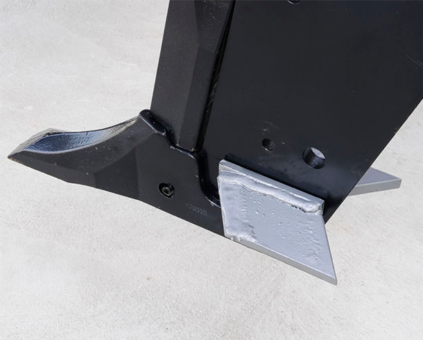 - Las barras de desgaste invertibles, fundidas, y tratadas térmicamente, aumentan la durabilidad del vástago. Más estrechas en el centro para cortar fácilmente el suelo y aliviar la compactación más profunda con un mínimo revolvimiento de la superficie.